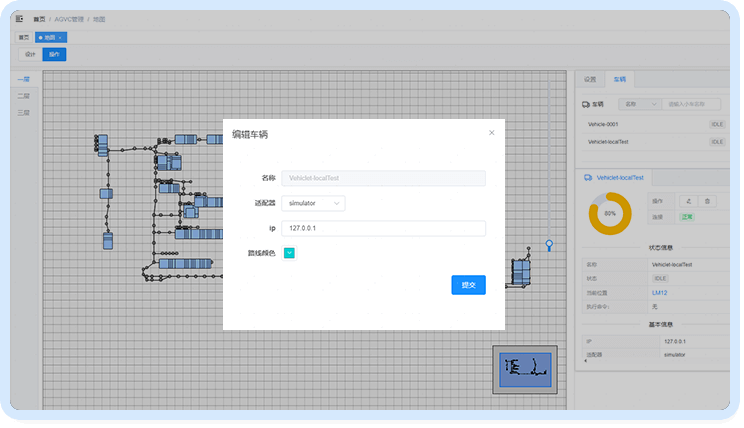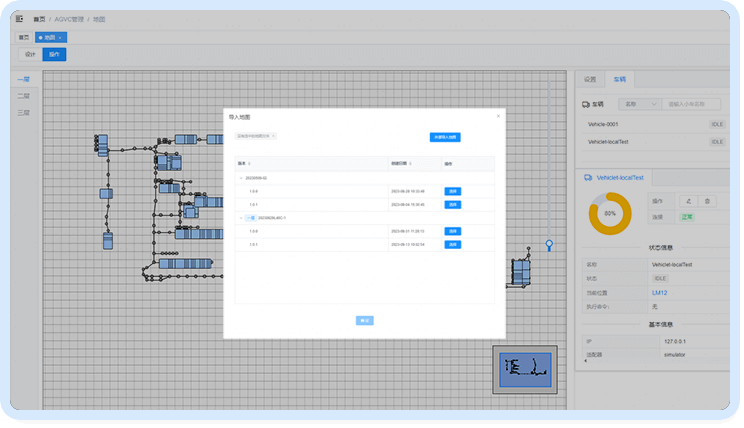 根据实际环境手动绘制并显示界面,可直接修改地图、设备排布点位、行驶通道及充电站的位置